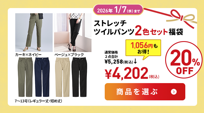 | ストレッチツイルパンツ2色セット福袋 | 4,202円 |