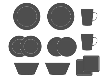 | アイテム | 330mlタンブラー2個 12㎝プレート2枚 17㎝プレート2枚 21㎝プレート2枚 26㎝プレート2枚 15㎝ボウル2個 21㎝ボウル2個 12.5×11㎝プレート2枚 12.5×12.5㎝プレート2枚 |
