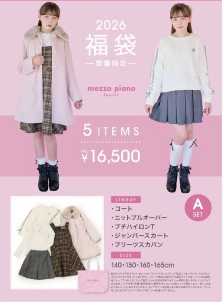 メゾピアノジュニア福袋2026で人気なのは、口コミによるとAセットで毎年争奪戦です!