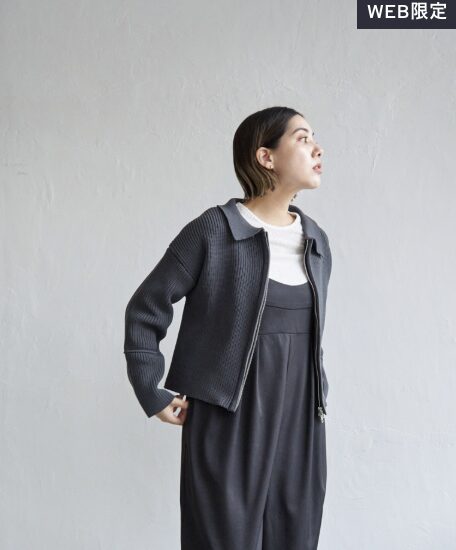 襟付きジップニットブルゾン(チャコール)
