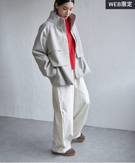 アイテムアシメフラップショートコート(ライトグレー)