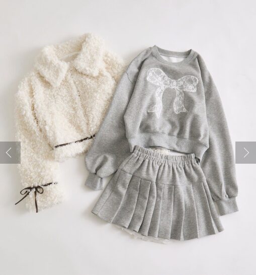 | アイテム | ・プードルボアブルゾン ・リボンスウェット ・裾レースカットプリーツスカート |