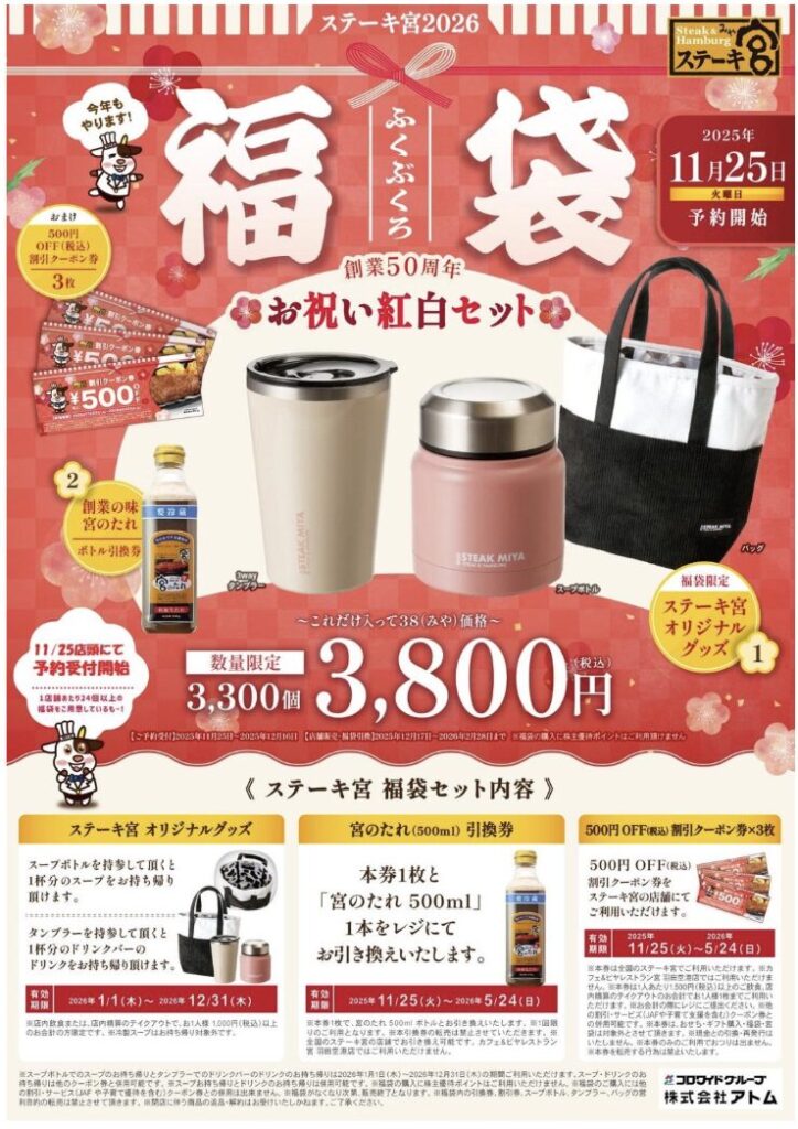 発売日をしっかりチェックして、絶対にステーキ宮福袋2026を勝ち取りましょう!