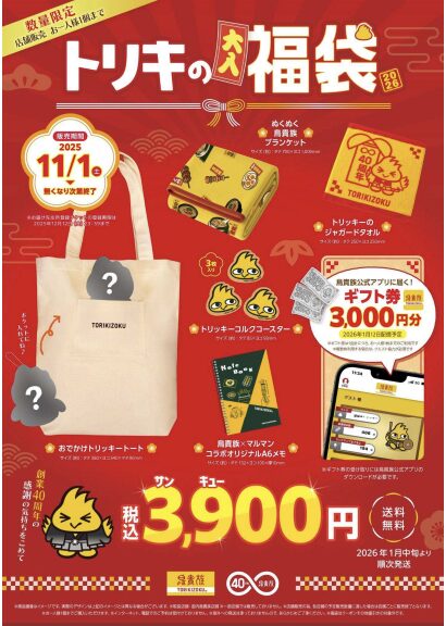 鳥貴族から2026年より「トリキ福袋2026」が発売されます!