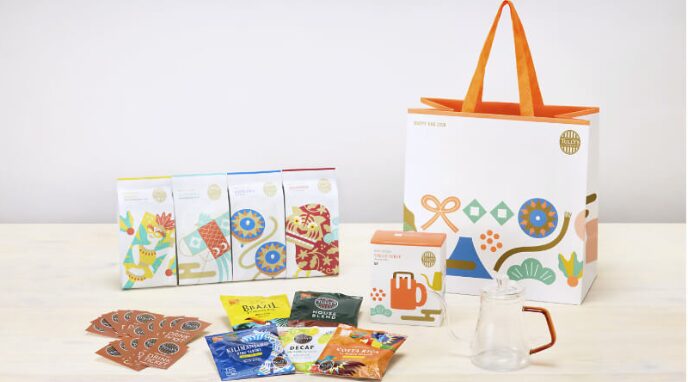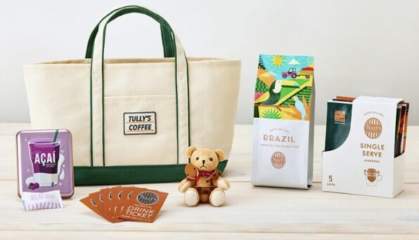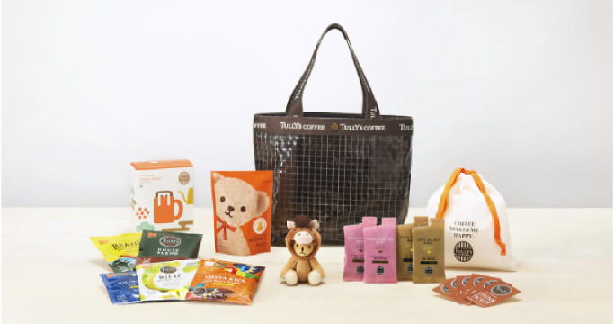 | アイテム | ・限定トートバッグ ・ブラジル ファゼンダバウ レッドブルボン(粉)140g ・シングルサーブ5種アソートBOX:タリーズの定番ビーンズ5種類 ・アサイー&ヨーグルト ソフトキャンディ:人気のアサイー風味のキャンディ。 ・干支ミニテディ(巳年) ・ドリンクチケット 6枚 |
