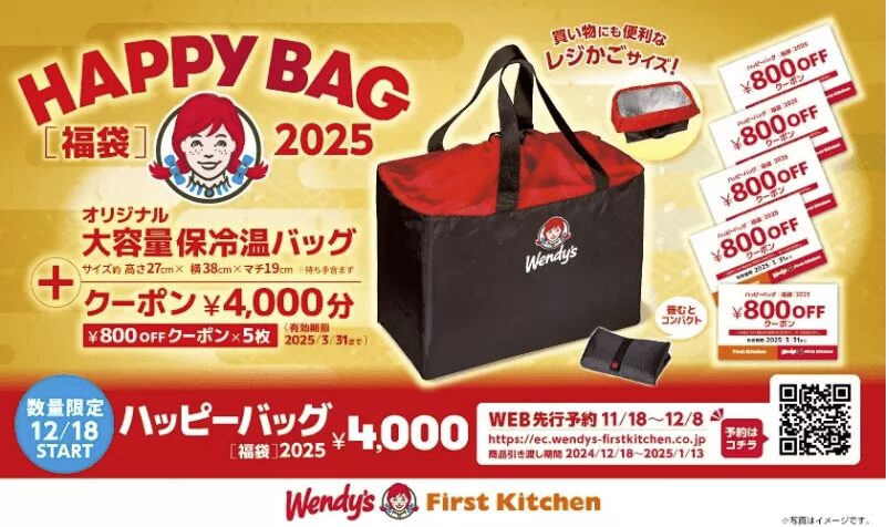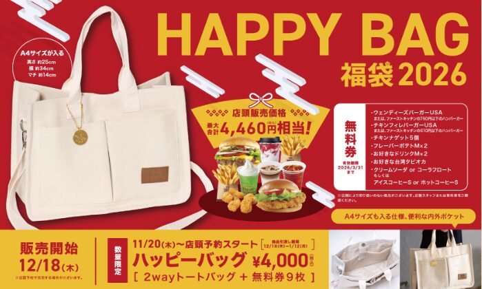 ウェンディーズ・ファーストキッチンの福袋は、2025年12月18日(木)から店頭販売が行われます。